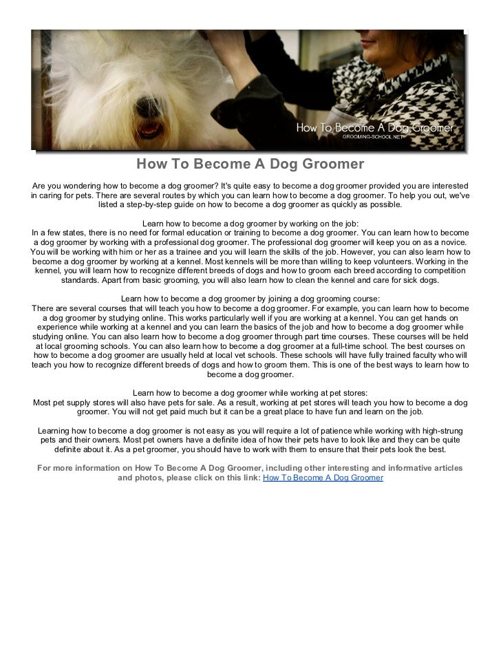 More and more people get dogs, so your chances of becoming a dog groomer are great! According to glassdoor.com the median pay for a groomer at petsmart is $10 an hour and can fluctuate anywhere between $8 and $15 an hour depending on region and. They are ranked by quality and likelihood for success. To become a dog groomer apprentice, you must have several qualifications. Choosing the right major is always an important step when researching how to become a dog groomer.